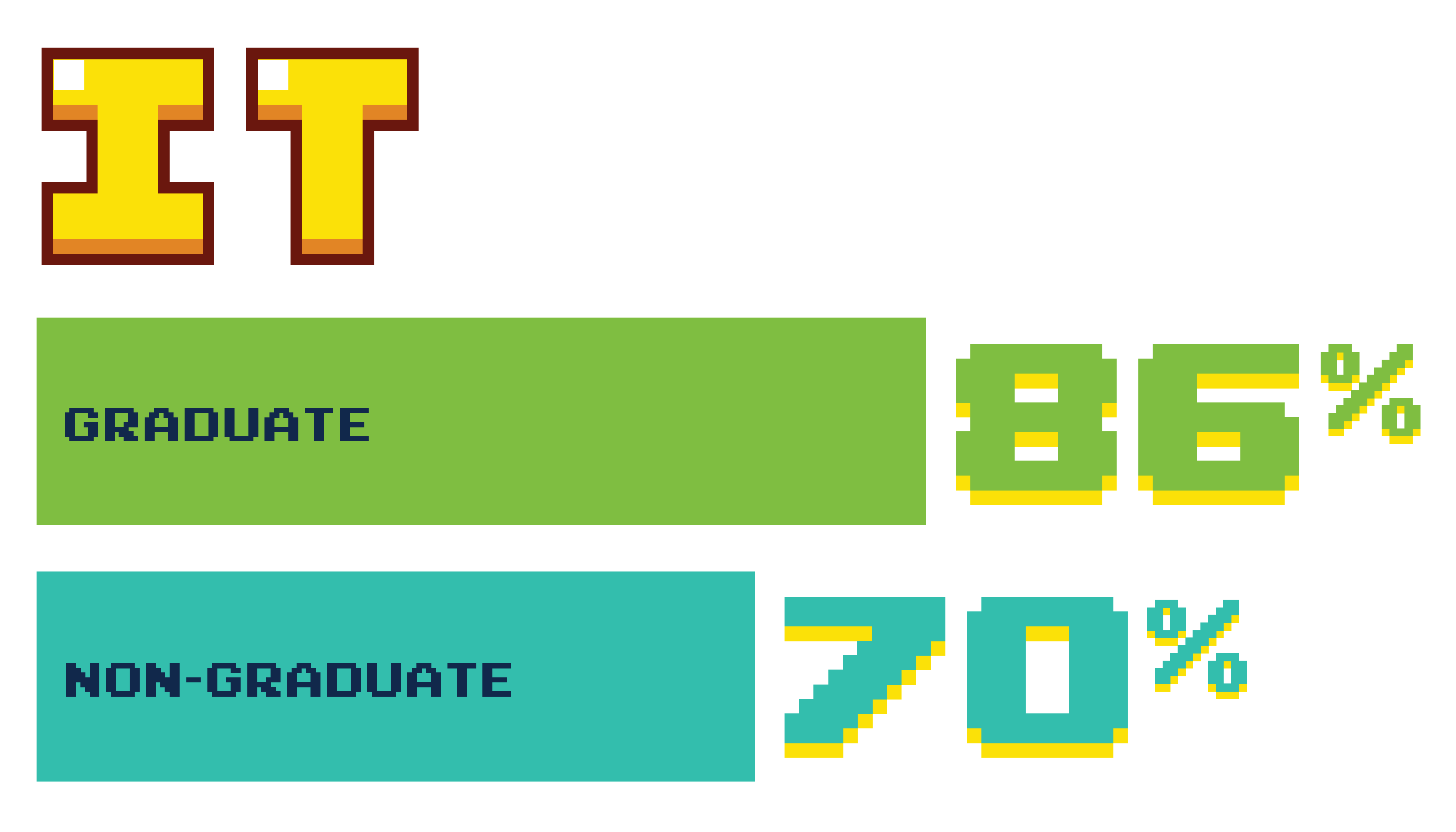 At Nebraska four-year colleges, Information Technology majors lead with an 86 percent timely employment rate for graduates and 70 percent for non-graduates.