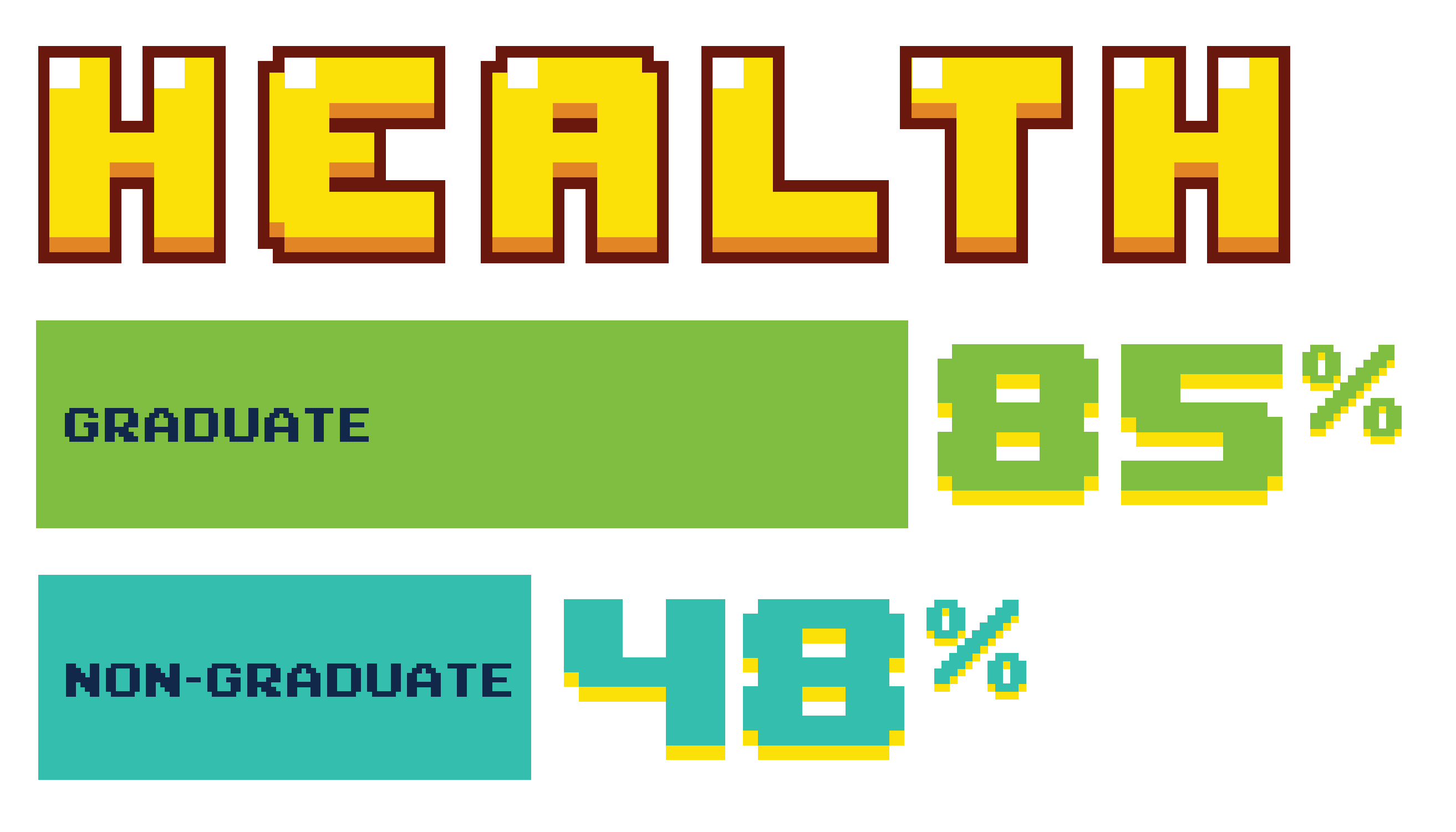 The largest gap? Health sciences—Noah’s field—where the difference between graduates and non-graduates is a whopping 37 percentage points.